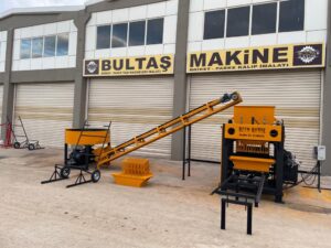Yumurtlayan briket makinası”, inşaat sektöründe kullanılan ve otomatik olarak briket (duvar taşı) üreten bir makinadır.